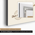 Thanks to the aluminum frame mounted on the back, the magnetic board protrudes approx. 15 mm from the wall. This gives the magnetic board an exclusive, floating gallery look.
