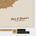 Detailansicht einer schwarz-weißen Weltkarte von Breuers, in der goldene Pins gesteckt sind und bereits besuchte Reiseziele markieren